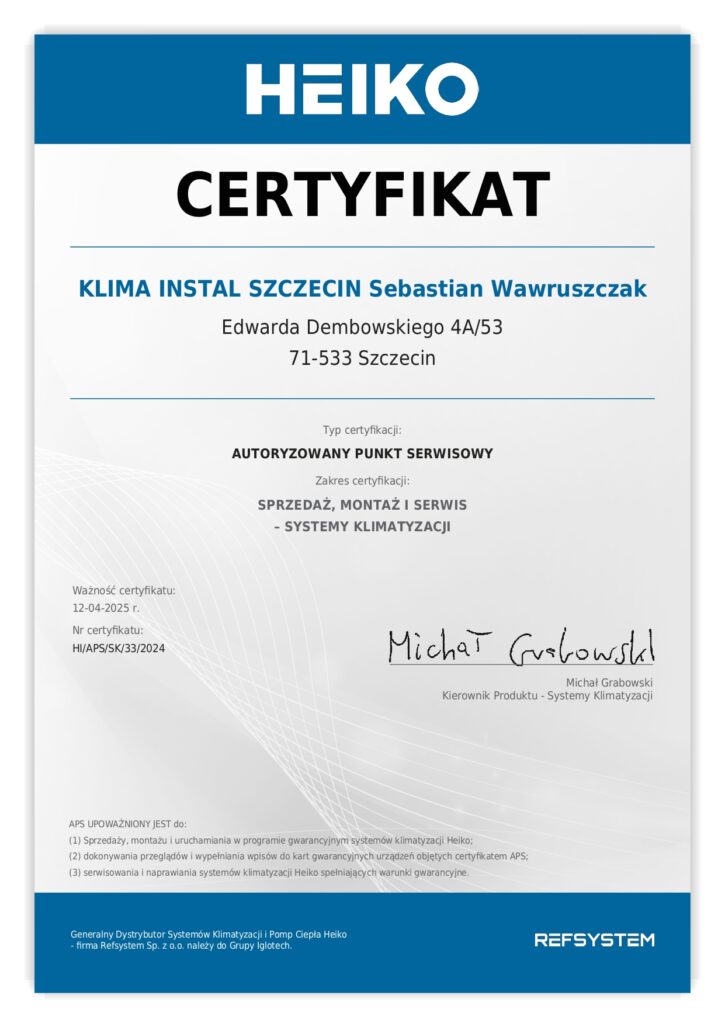 Montaż Klimatyzatorów Heiko z Klima Instal Szczecin